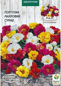 Портулак махровая "Смесь" - это однолетнее растение, со стелющимися стеблями, высотой 10-15 см. Цветки крупные, махровые, диаметром 3-4 см, белого, желтого, оранжевого, розового или красного цвета, во время цветения образуют красивый пестрый ковер.