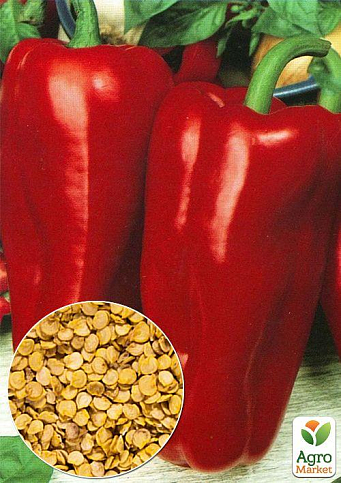 Перец "Красный Гигант" - это среднеспелый сорт. Вегетационный период от всходов до биологической спелости 140-160 дней. Куст штамбовый, высотой 80-100см, во время плодоношения требует опоры. Плоды удлиненно-призмовидной формы, очень крупные, массой 500-800г, длиной 20-30см, в биологической спелости красной окраски. Толщина стенок 8-10мм. Используется для потребления в свежем виде и консервации.