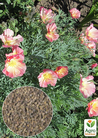 Эшшольция "Яблоневый цвет" - это многолетнее растение до 25 см высотой, используемое как однолетнее. Стебель прямой, тонкий, с многочисленными ребристыми серо-зелёными, голыми побегами. Цветки, гофрированные серебристо розового оттенка. Цветёт обильно с июня по октябрь. Используют для клумб, рабаток, каменистых горок.