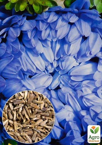 Астра "Лазурит" - это однолетнее растение. Куст колонновидный, высотой 50-70см. Цветоносы слабооблиственные, длиной 35-50см. Соцветия махровые, диаметром 8-12см, голубого цвета. На кусте формируется до 30 соцветий на побегах первого и второго порядков. Используется для среза. При посеве семян, следует помнить, что прорастающие семена не переносят пересыхания почвы, а также излишнюю влажность и резкие колебания температуры.