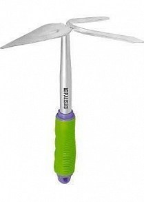 Мотыжка комбинированная, профиль "лепесток" и 2-зубая, с обрезиненной рукояткой, которую при необходимости можно удлинить.