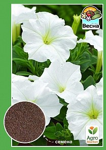 Петуния крупноцветковая белая ТМ "Весна" 0.3г - это новая серия с компактным кустом, (около 15 см) покрытым многочисленными крупными (10-12 см) одноцветными или двуцветными цветками широкого цветового диапазона. Не перерастает в рассаде, обладает отличным кущением в рассадных горшках. Очень однородная по габитусу серия, сохраняющая компактность на протяжении всего периода вегетации.