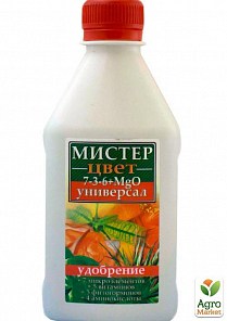 Минеральное Удобрение "Универсал" ТМ "Мистер цвет" 300мл добавит вашему растению минералов, которых ему так не хватает. О чем свидетельствует бледная окраска цветков? Скорее всего, об отсутствии полноценного питания у растений.