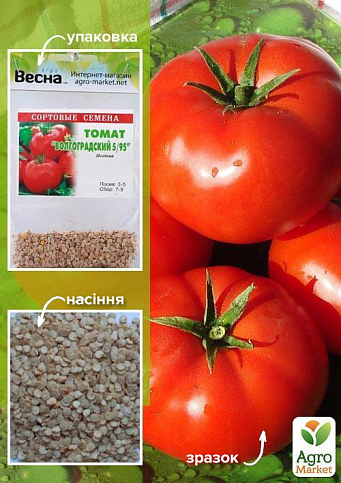 Томат "Волгоградский 5/95" - это сорт для открытого грунта. Сорт среднепоздний, урожайный, лежкий, транспортабельный. Куст штамбовый, среднерослый. Кисть простая, компактная, с 4-5 плодами. Плоды плоскоокруглые и округлые, ярко-красные, с гладкой поверхностью. Плоды крупные - 100-120г. Средний урожай колеблется от 300 до 650 ц/га. Период от всходов до начала созревания - 116-126 дней.