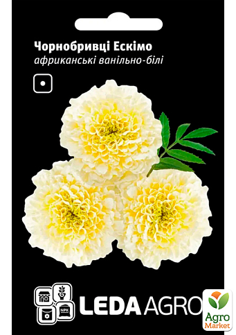 Бархатцы "Эскимо" - это однолетнее декоративное растение с необычайно мягким и элегантным видом, сразу привлекающее внимание среди традиционных ярких сортов. Большие махровые соцветия нежного ванильно-белого оттенка создают утонченный акцент в цветнике и придают оформлению сада сдержанную изысканность. Такой цвет выглядит нестандартно и гармонично подходит тем, кто стремится создать более щепетильную, благородную палитру в композициях. Растение формирует плотный, аккуратный куст высотой 35-40 см с красивыми темно-зелеными листьями, которые подчеркивают красоту цветков и делают их еще более выразительными.