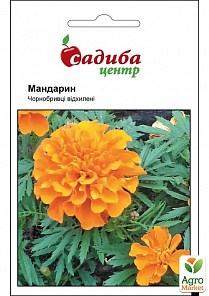 Бархатцы "Мандарин" - это бархатцы низкорослые. Растение однолетнее, высотой до 30 см. Соцветия - ярко-оранжевые корзины. Стебли прямостоячие, собранные в кусты. Размножается семенами, которые сохраняют всхожесть 3-4 года. Сеют в начале апреля. Цветение начинается в июне. Всходы появляются на 5-10 день после посева. Растения неприхотливы, быстрорастущие, светло и теплолюбивые, засухоустойчивые. Оптимальная температура для роста молодых растений 18-20 ° С. Требуют питательных, хорошо увлажненных почв в первую половину лета. Хорошо смотрятся в групповых посадках, клумбах и рабатках.