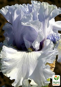 Ирис бородатый крупноцветковый "Luxuriant" - это декоративное растение, представитель семейства Касатиковых. Растение представляет собой прямостоячий стебель с зелеными плоскими листьями и большими цветками насыщенного цвета. Льдисто-белый цветок с легким голубым вливанием в основании стандартов.