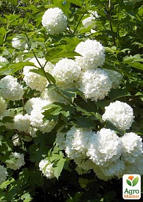 Калина декоративная "Pohjan Neito" - это цветущий декоративный кустарник поразительной красоты. При росте образует высокий куст с широкой, пышной кроной, формируемой тонкими, но прочными побегами, покрытыми лопастными листьями темно-зеленого цвета. Осенью окраска листьев изменяется, становится бордово-красной или красно-оранжевой. Цветение начинается в июне, в этот период весь куст покрывается крупными шаровидными соцветиями, состоящими из мелких белых цветов.