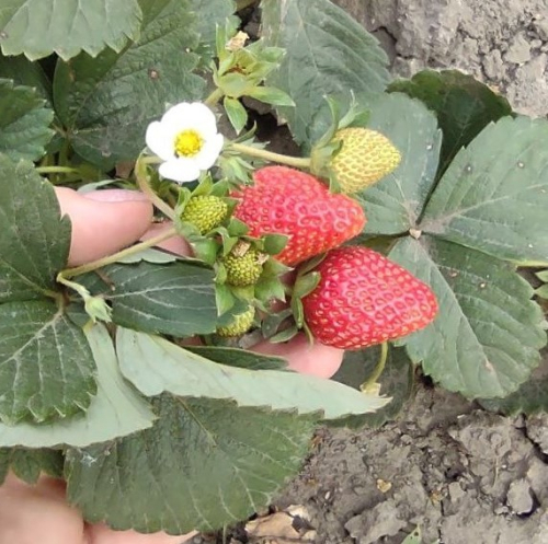 Придбала 2 рази весною (в квітні) . Висадила, всі корінчики прийнялись. Кущики, що купила раніще - були слабіші за кущика, що купила вдруге. Перший врожай отримала на початку черня 2-3 ягідки з 10 кущиків, а на прикінці липня пішла друга хвиля. через 2 дні по 100 г з 10 кущиків. Ягоди солодкі і ароматні. На прикінці вересня ще квітує і є ягоди, не такі солодкі, але такіж ароматні. У нас крапельний полив и затіняюча сітка 60%.