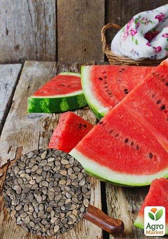 Арбуз "Альянс" - это сорт среднеранний, относительно стойкий против фузариозного увядания и антракноза, отлично переносит засуху, от всходов до начала созревания плодов 70-75 дней. Плоды шарообразной формы, поверхность слабо-сегментирована, цвет фона плодов светло-зеленый, рисунок - темно-зеленые полосы которые смыкают. Масса среднего плода 4-6кг. Кора средней толщины 10-16мм. Мякоть красного цвета, зернистая, нежная, сочная, сладкая.