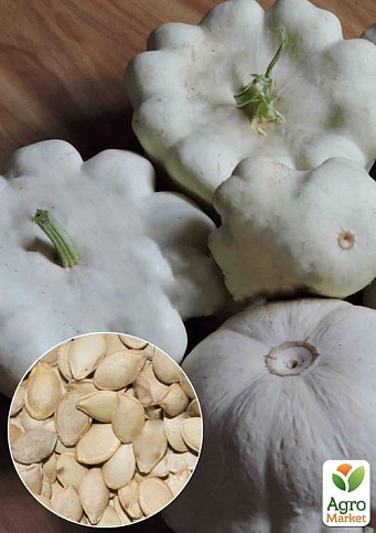 Патиссон "Белоснежка" - это среднеспелый сорт. Растение кустовое, ветвистое, высокоурожайное. Плоды сплюснутые, тарелкообразной формы, с зубчатыми краями, массой 400 - 500г. Цвет плодов в технической спелости белый. Мякоть белая, плотная с отличными вкусовыми качествами. Сорт относительно устойчив к болезням. Используют для консервирования и приготовления овощных блюд.