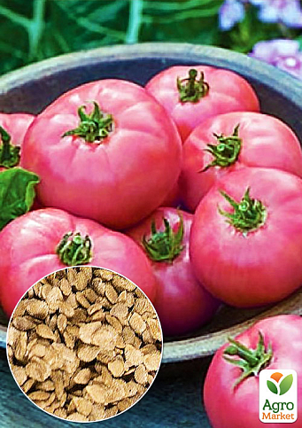 Томат "Денді розовий" - це великоплідний, індетермінатний сорт для вирощування на відкритому та закритому ґрунті. Його характеристики включають насичено-рожевий колір, соковиту та солодку м'якоть, вес плодів 200-500 г та відмінні смакові якості, що робить його ідеальним для салатів. Сорт потребує пасинкування та підв'язки, добре реагує на удобрення та має високу стійкість до фітофторозу.