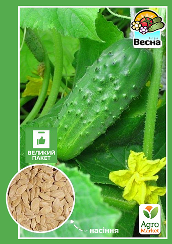 Средне-ранний сорт. Богатый урожай. Растение характеризуется длительным периодом плодоношения, практически до осени. Стойкий к разного вида вирусам. Маленькие, зелёные плоды 8-10см., не становятся горькими. Зеленец при перерастании не увеличивается в диаметре, сохраняя товарный вид! Идеально подходит к засаливанию и к приготовлениям разного вида салатов. Урожай с июля по сентябрь. Высокая устойчивость к ложной мучнистой росе. Семена инкрустированные, покрыты тонкой розовой оболочкой. Они обрабатываются специальными составами, которые образуют на поверхности семени тонкую пленку.