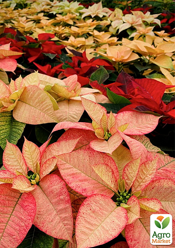 Пуансеттия "MIX" Уценка (Рождественская Звезда) - это алые, розовые или белые декоративные растения в горшках, которые также называют «рождественская звезда» или «вифлеемская звезда», так как зацветают культуры как раз к новогодним праздникам. Пуансеттия не может остаться незамеченной. Растение смотрится очень эффектно, оригинально и отличается нетребовательностью к уходу.
