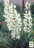Юкка нитчатая – это оригинальное вечнозеленое растение. Несмотря на свой тропический вид, она хорошо зимует на территории всей нашей страны, выдерживая морозы до -15 градусов. У юкки жёсткие заостренные листья длиной 30-60см и шириной 3-10см. Края листовых пластинок расщеплены на тонкие волокна (отсюда и название растения). Листья собраны в красивую розетку, у которой со временем образуются боковые отростки. Цветонос – высокая до 2м, разветвленная метелка - появляется в июне-июле. Многочисленные (до 200 штук) цветы, белые или кремовые, диаметром до 6см имеют очень привлекательный вид в течение двух-трех недель.