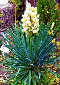 Юкка нитчатая – это оригинальное вечнозеленое растение. Несмотря на свой тропический вид, она хорошо зимует на территории всей нашей страны, выдерживая морозы до -15 градусов. У юкки жёсткие заостренные листья длиной 30-60см и шириной 3-10см. Края листовых пластинок расщеплены на тонкие волокна (отсюда и название растения). Листья собраны в красивую розетку, у которой со временем образуются боковые отростки. Цветонос – высокая до 2м, разветвленная метелка - появляется в июне-июле. Многочисленные (до 200 штук) цветы, белые или кремовые, диаметром до 6см имеют очень привлекательный вид в течение двух-трех недель.