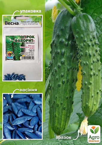 Огірок оброблений "Фаворит" - це чудовий сорт засолювання. Для відкритого ґрунту. Середньоранній. Період від сходів на початок плодоношення 50-52 дня. Рослина довгоплетиста. Плід циліндричний, середньогорбчастий, опушення рідке, чорне, забарвлення зелене з поздовжніми світлими смугами. Довжина 9-11 см, діаметр 3,5-4 см. Маса 90-100 г. Рекомендується для споживання у свіжому вигляді та засолювання.