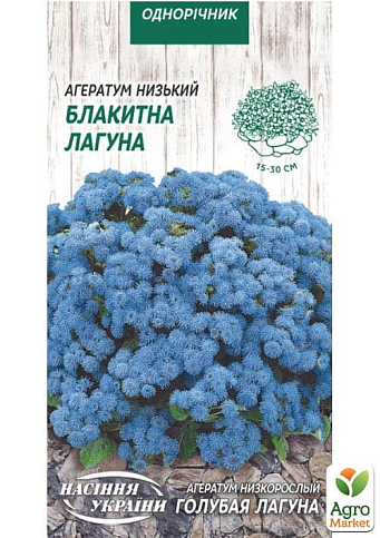 Агератум "Блакитна лагуна" - це багаторічна рослина, що цвіте в перший рік. Компактний кущ заввишки 40-60 см. Цвіте рясно з червня до заморозків. Зацвітає через 3-4 місяці після посіву. Досить посухостійкий, світлолюбний, але може рости при невеликому затіненні. Віддає перевагу легким родючим ґрунтам.
