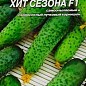 Огірок "Хіт сезону F1" - партенокарпічний високоврожайний скоростиглий пучковий корнішони гібрид універсального типу вирощування (для відкритого грунту, тунелів, весняних теплиць). Надійний гібрид - завдяки комплексній стійкості до хвороб і несприятливих умов середовища дає стабільно високий урожай в будь-яких умовах. Гарне відростання бічних пагонів в поєднанні з II типом саморегулювання розгалуження забезпечує тривале активне плодоносіння до глибокої осені. У вузлах формується від 2-3 до 5-6 і більше зав'язі. Зеленці красивою яскраво-зеленого забарвлення, білошипий, з щільною хрусткою м'якоттю, з часто-середнім опушенням, довжиною 9-12 см; засолювальні і смакові якості дуже високі. Теневинослів. Гібрид стійкий до борошнистої роси, оливкової плямистості, вірусу звичайної огіркової мозаїки, толерантний до несправжньої борошнистої роси, кореневих гнилей. Посів у відкритий грунт проводять в квітні-травні.