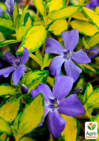 Барвінок малий "Illumination" - це декоративний сорт з контрастним строкатим листям і ефектним килимовим характером росту. Листя невелике, овальне, з яскравою золотисто-жовтою серединою і зеленою облямівкою, щільно розташоване на тонких сланких пагонах, які вкорінюються в вузлах. Квітки воронкоподібної форми, ніжно-фіолетово-сині, до 3 см в діаметрі, з'являються навесні, починаючи з квітня, і можуть повторно зацвісти влітку. Висота рослин зазвичай не перевищує 10-15 см, а ширина килима може досягати 80-100 см при активному розростанні.
