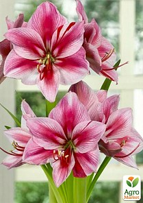 Гіппеаструм простий "Gervase" (Амарілліс) - це сорт гіпоаструму, який чудово виглядає завдяки мальовничому поєднанню блідо-рожевих пелюсток з темними пурпурово-рожевими прожилками. Червоні тичинкові нитки красиво контрастують із жовтими пильовиками. Кожна цибулина випускає від 1 до 3 квітконосів, у яких розпускається по 4 квітки. Чим більша цибулина, тим більше квітконосів вона може дати.