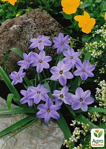 Іфейону "Рольф Фідлер" - ніжне і акуратне цибулинна рослина, мало поширене серед садівників, але заслуговує до себе найпильнішу увагу. Навесні цибулина випускає кілька міцних стебел заввишки 15см, утворюючи елегантні і мініатюрні ніжно-блакитні квітки з лілового смужкою по середині кожної пелюстки. Квіти Іфейону схожі на шестиконечні зірочки діаметром 2.5-3см. Цвітіння припадає на квітень-травень і радує вас протягом 10-15 днів. Особливість Іфейону Rolf Fiedler в легкому запаху часнику від шкіри, якщо потерти між пальцями його пелюстки. Легко розмножується насінням. Рекомендується вирощувати на легкій, з листовим перегноєм і хорошим дренажем, грунті. Іфейону "Рольф Фідлер" вважає за краще для посадки сонячні, злегка затінені місця, захищені від вітру. У середній смузі бажано легке укриття, мульчування. Іфейону "Рольф Фідлер" використовують для висадки в групових посадках, клумбах, бордюрах, цікаво виглядає на вікнах і балконах як горщечне рослини.