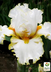 Опис Ірис "STOLEN SWEETS" - це сорт,який дивний не тільки красивою формою і ніжною окантовкою, а й досконалістю запаху! Стандарти білі з тонкою окантовкою кольору золота, фоли кольору стандартів, з тонкою золотистою окантовкою, яка ближче до стандартів стає ширше, борідки насичено-помаранчева.