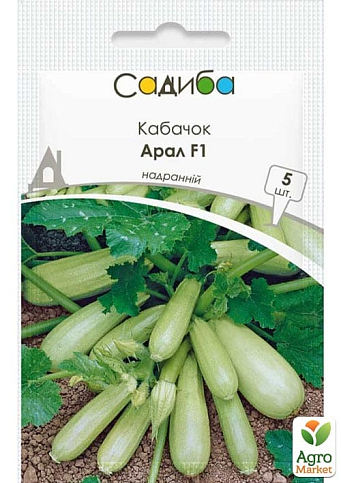 Кабачок Арал F1 - це надранній (30-35 днів від висадки розсади)гібрид із тривалим плодоношенням для відкритого і закритого ґрунту. Кущ компактний, плоди світло-зелені, циліндричні (довжина 12-15 см, діаметр 4-6 см). М'якуш білосніжний, щільний. Має високу зав’язуваність плодів відмінної якості навіть при низьких температурах, виявляє стійкість до вірусних і бактеріальних захворювань. Добре підходить для тушкування, консервації й переробки на овочеву ікру.