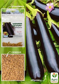 Баклажан "Богатырь" (Зипер) ТМ "Весна" 1г - это среднеспелый, высокоурожайный, дружносозревающий сорт для выращивания в защищенном грунте. Растение компактное, невысокое, характеризуется ранним и дружным ветвлением, компактным расположением плодов в нижней части растения. плод цилиндрический, с мякотью без горечи. Окраска плода в технической спелости темно-фиолетовая, в биологической - фиолетово-черная. Поверхность гладкая, глянцевая.