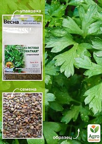 Петрушка "Ароматная" (Зипер) ТМ "Весна" 7г - это ранняя, ароматная зелень в течение всего сезона! Раннеспелый, высокоурожайный сорт листовой петрушки. Формирует крупную розетку с большим количеством ароматных листьев. Пригоден для всесезонного выращивания в открытом грунте и теплицах. Листья большие, интенсивно зеленые и очень ароматные. Используют в свежем виде, для переработки и заморозки. Отлично подходит для домашней кулинарии и рынка свежих продаж.