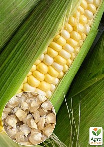 Среднеранний высокоурожайный гибрид сахарной кукурузы – 80-85 дней до созревания. Растение среднерослое, высотой до 190см. Кочан – большой, цилиндрической формы, длиной 20-22см, массой 220-240г, цвет зерна - белый. Урожайность составляет 1.4-1.5кг/м2. Высокие вкусовые качества свежо отваренных кочанов.