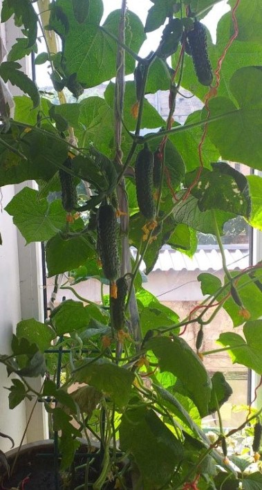 Що може бути краще за своїх огірків, зірваних відразу до столу! Виявилося, що це можливо не тільки на дачі, а й в місті. Свою дачу ми продали і я вирішила виростити огірочки-корнішони на лоджії, яка виходить на південний схід. Лоджія засклена і це спростило завдання. Купила насіння, яке не вимагає запилення. У спекотну погоду притіняла від прямих сонячних променів, щоб не згоріли листя. Ставила на балкон відро води поруч з рослинами для підвищення вологості. Підвязувала на натягнутих мотузках. Росли дуже повільно, підгодовувала, але коли потепліло, стали швидше рости. Плоди зьявилися на 42 день. Врожай не божевільний, але приємно, що у власній квартирі. Ніколи б не подумала, що таке може бути.