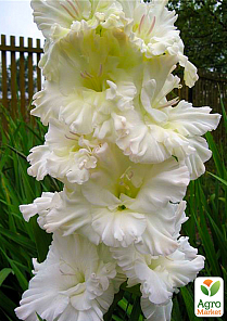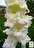 Гладиолус "Snowy Frizzle"-это строгий, пышный цветок.Прекрасно впишется в любой цветник и не останется незамеченным. Это многолетнее растение, корень – клубнелуковица. Стебли не ветвящиеся, вертикальные, облиственные, вырастают до 1,2 метра в высоту. Предпочтительно их подвязать до начала цветения. Листья тёмно-зелёные, линейные, длинные, заострённые. На стебле расцветает до 15 чисто белых цветков с тремя белыми тычинками. Лепестки сильно гофрированные. Зацветает в начале августа, не имеет ярко выраженного запаха.