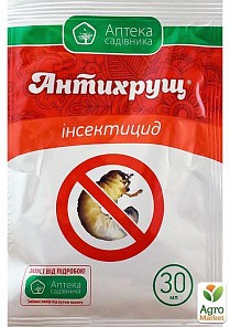 Антихрущ 30мл - двухкомпонентный контактно-системный инсектоакарицид, эффективен для защиты с/х культур от комплекса грунтовых вредителей: личинки хрущей, колорадский жук, дротянки, совки и др.