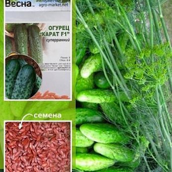 Огурец Карат F1 Суперранний партенокарпический гибрид огурца для выращивания в открытой почве, пленочных и стеклянных теплицах. Обладает интенсивной, дружной отдачей урожая. Растения сильнорослые, ветвление ниже среднего или среднее. Зеленцы интенсивно-зеленой окраски, крупнобугорчатые, белошипые, длиной 10-12 см, с часто-средним расположением бугорков. Засолочные и вкусовые качества высокие. В узлах формируется от 2-3 до 4-5 завязей. Гибрид устойчив к мучнистой росе, оливковой пятнистости, вирусу обыкновенной огуречной мозаики, толерантен к ложной мучнистой росе, корневым гнилям.