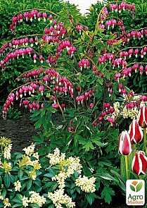 Дицентра (Dicentra) - кустистые растения с крупными перисто- рассечёнными листьями, зелёными сверху, сизыми снизу. Цветки расположены на дугообразно-изогнутых кистевидных соцветиях. Цветение длительное, пик в июне. Дицентра хороша в бордюрах вдоль дорожек, в смешанных цветниках, низкорослые виды используются и на горках. Очень долговечна. Размножается делением кустов весной или осенью. Хорошо сочетается с незабудкой, бруннерой, поздноцветущими нарциссами и тюльпанами, горянкой, прострелом, тиареллой, баданом, примулой и папоротники.