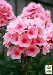 Флокс многолетний "Bright eyees" - это многолетнее, цветущее, кустистое растение, с цветком нежного розового цвета с более тёмной серединкой. Относится к метельчатому виду флоксов. Диаметр каждого цветка два-три сантиметра, в соцветии несколько десятков цветов, диаметр соцветия около 15 сантиметров. Каждый цветок имеет пять лепестков, края которых немного загнуты вперёд. Соцветие располагается на прямом стебле. Он имеет относительно среднюю высоту, длинной от 45 до 75 сантиметров. Листья тонкие, удлинённые, тёмно-зелёного цвета со светлой серединкой. От одного корня может вырасти до двадцати побегов. При цветении распространяет приятный, чуть сладкий запах. Время цветения - с начала июля до конца августа.
