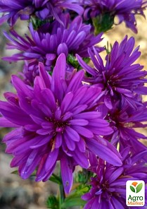 Астра ново-бельгийская "Henry I Purple" - это низкий куст, шаровидной формы, цветки густо махровые, пурпурные, очень многочисленные.