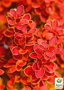Барбарис Тунберга "Orange Ice" – это компактный сорт с плотной колонновидной кроной. Растет медленно – после 6 лет высота 50 см. Побеги прямые. Листья весной и летом оранжево-медные, осенью красные и ярко-оранжевые. Цветки мелкие, желтые. Цветение в мае. Плоды мелкие, красные, созревают в сентябре. Место солнечное, к почве нетребовательное, зона 4 (до -29°С).