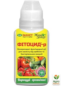 Биофунгицид для овощей и фруктов "Фитоцид-р" ТМ "Живая Земля" 125мл - это биопрепарат фунгицидного действия, который эффективно защищает овощные и плодово-ягодные культуры от грибковых заболеваний. Основным действующим веществом препарата являются бактерии Bacillus subtilis. Они проникают в патогенные споры и блокируют их рост, что приводит к разрушению жизненно важных тканей. В почве полезные бактерии находятся в форме спор или вегетативных клеток. Когда наступают благоприятные условия, бактерии переходят в активное состояние и начинают работать, защищая растения и почву от болезней. Штаммы спор полезных бактерий проявляют разностороннее действие на возбудителей заболеваний. Они вырабатывают антибиотики, являются антагонистами по отношению к фитопатогенам, повышают иммунитет растения и стимулируют рост культуры. Помимо обработки вегетирующих растений, Фитоцид-Р может быть использован для предпосевной обработки семян и рассады. В результате применения данного препарата увеличивается урожайность и качество продукции. Биологический фунгицид Фитоцид-р эффективен в обработке зерновых, бобовых, технических культур, картофеля, овощей открытого грунта, цветов, овощей закрытого грунта, садовых, декоративных и ягодных растений против ризоктониоза, фитофтороза, парши, корневых гнилей, пятнистостей, септориоза, гнилей всходов, мучнистой росы, ржавчины, черной ножки, фузариоза, бактериоза, альтернариоза.