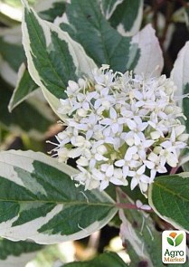 Дерен белый "Sibirica Variegata" – Быстрорастущий кустарник средней величины высотой до 2м, с тонкими декоративными побегами. Кора на молодых побегах пурпурно-красная, очень эффектная. Зимой побеги так же яркого, насыщенно-кораллово-красного цвета коры. Очень похож на форму "Elegantissima", но имеет не столь энергичный рост. Листья широкие, яйцевидные, серо-зеленые с белой каймой, несколько морщинистые, снизу – сизовато-белые. Осенью окрашиваются в фиолетово-красный цвет. Цветки мелкие, белые, собраны в многочисленные щитковидные соцветия. Плоды мелкие, круглые, ягодообразные.