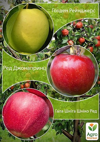 Дерево-сад укорененный в контейнере Яблоня "Голден Рейнджерс+Ред Джонапринц+Гала Шнига Шнико Ред"
