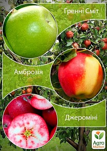 Дерево-сад укорененный в контейнере Яблоня "Гренни Смит+Амброзия+Джеромини" саженец 2 года 1 саженец в упаковке