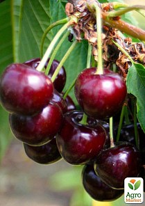 Эксклюзив! Черешня темно-бордовая "Рассыпая серебро" (Scattering silver) – это очень высокие деревья – могут вырасти до шести метров. Крона имеет вид шара. Ветки отходят под острым углом, листвы много. Листья большие, по краям зазубренные, кончик заострен. Урожай поспевает в середине июня. С дерева можно собрать до 80кг ягод. Плоды большие, весят до 15 грамм, оваловидные, одинаковые между собой. Цвет темно-бордовый, у созревших ягод практически черный. Вкус выразительный, сладкий, легкая кислота лишь освежает его. Внутри темно-красные, мясистые. Кожица глянцевая, очень крепкая. Косточка небольшая, чуть вытянутая.
