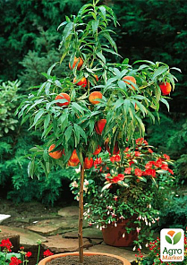 Персик колоновидный желтый с темно-красным румянцем "Успешный Джош" - это урожайный сорт сочных желтых персиков с отличительными темно-красными бочками. Сорт премиальный, является колоновидным и достигает высоты не более 3 метров. Плоды очень вкусные, относятся к десертной разновидности персиков, имеют легкое опушение и нежную кожицу. Богатый урожай румяных персиков можно собирать уже в конце июля. Сорт стойкий ко многим болезням и вредителям, а также красиво украсит любой участок аккуратной пирамидальной кроной.