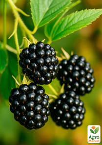 Трипл Краун (Triple Crown) - это один из самых популярных сортов американской селекции, который по праву завоевал любовь садоводов по всему миру. Кусты отличаются мощным ростом, достигают до 2 м в высоту и при этом полностью лишены шипов, что делает уход и сбор урожая максимально удобным. Этот сорт радует стабильно высокой урожайностью - до 13-15 кг с одного куста. Ягоды крупные, весом около 7-8 г, насыщенно-черные, с красивым блеском, привлекательной округло-овальной формы. Они обладают плотной, ароматной мякотью и насыщенным сладким вкусом с лёгкой освежающей кислинкой. Мелкие семена почти не ощущаются, что делает ягоды особенно приятными для свежего употребления.