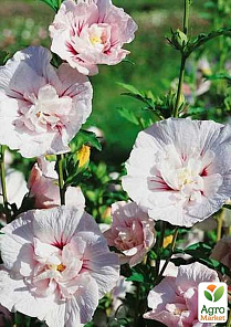 Гибискус сирийский "China Chiffon" - это листопадный кустарник с махровым типом цветка, выходец из Китая, в наших садах еще не частый гость. Хотя его показатели зимостойкости до - 29 градусов, подходит практически для всех регионов Украины. Это отличный солитер на клумбе, его ажурная крона и великолепные белые махровые цветы с легкими красными штрихами украсят придомовую территорию. Хорошо смотрится в ажурной живой изгороди, но чаще всего выращивается в кадках, горшках на террасе, в оранжереях, в зимних садах, в холлах гостиниц. Растение отлично переносит сухость воздуха, требуя лишь редких обильных поливов. А вот к грунту кустарник совсем не требователен, на бедных почвах чаще подкармливать комплексными удобрениями. Тогда он отблагодарит продолжительным цветением - с июня и до самых заморозков и крупным размером цветов.