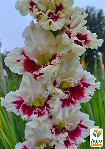 Гладиолус "Amber Mistique" - это многолетняя культура, цветы имеют прекрасный нежно-молочный цвет с ярко-розовой серединкой. Крепкие стебли покрыты тонкими, длинными до 80 см листьями ярко-зеленого цвета прекрасно сочетаются с большими примерно 12-15 см в диаметре цветами. Общая высота достигает около 100-120 см. У цветов отсутствует выраженный аромат.