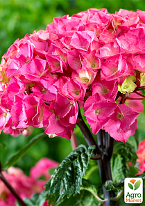 Гортензия крупнолистная "Black Steel Flamingo" – это красивый декоративный кустарник. Он выделяется своими тёмно-зелёными листьями с лёгким красноватым оттенком и черешками, окрашенными в глубокий пурпурно-чёрный цвет. Цветки распускаются крупными шаровидными соцветиями и меняют окраску розового цвета. Это растение отлично подходит для выращивания в контейнерах и вазонах. Гортензия предпочитает полутень и хорошо дренированные, кислые почвы. Требует регулярного полива, особенно в жаркое время года.