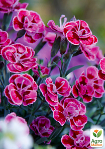 Гвоздика Махровая "Purple Wedding" - это эффектный сорт с двуцветными пурпурно-розовыми цветками с белой каймой. Ценится за компактный рост, аромат и продолжительное цветение, подходит для клумб, бордюров и контейнерного выращивания.